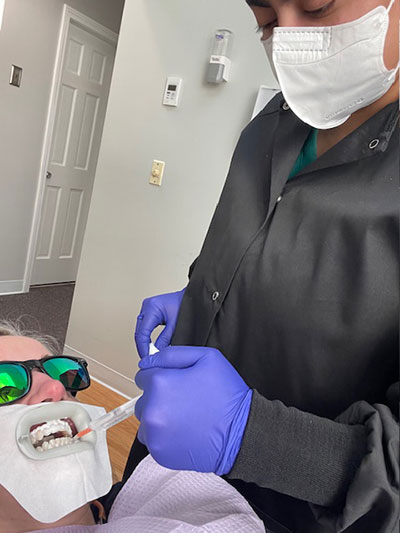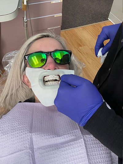 You may experience temporary sensitivity in your teeth while whitening. We have specific strategies for you to use, and will customize the product and method to help you have a comfortable and safe whitening experience.